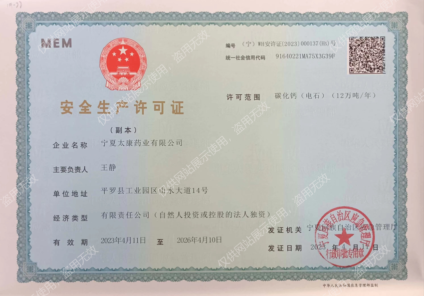寧夏太康藥業有限公司是寧夏大地循環發展股份有限公司全資控股企業。工廠占地面積1600畝,擁有固定資產6.74億元人民幣,總裝機容量16萬KVA,是寧夏回族自治區 40家大型工業骨干企業之一。企業現有員工1100余人,其中主要管理人員134人,專業技術人員112人,高級工程師5人、工程師10人、經濟師3人、技師15人,公司擁有年生產能力:醫藥中間體產品-雙氰胺6WT、單氰胺5000T、一水肌酸3000T、氨基胍碳酸鹽3000T;化工基礎原料產品-石灰氮22.5WT電石12WT。